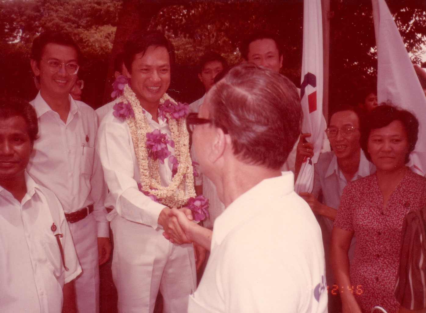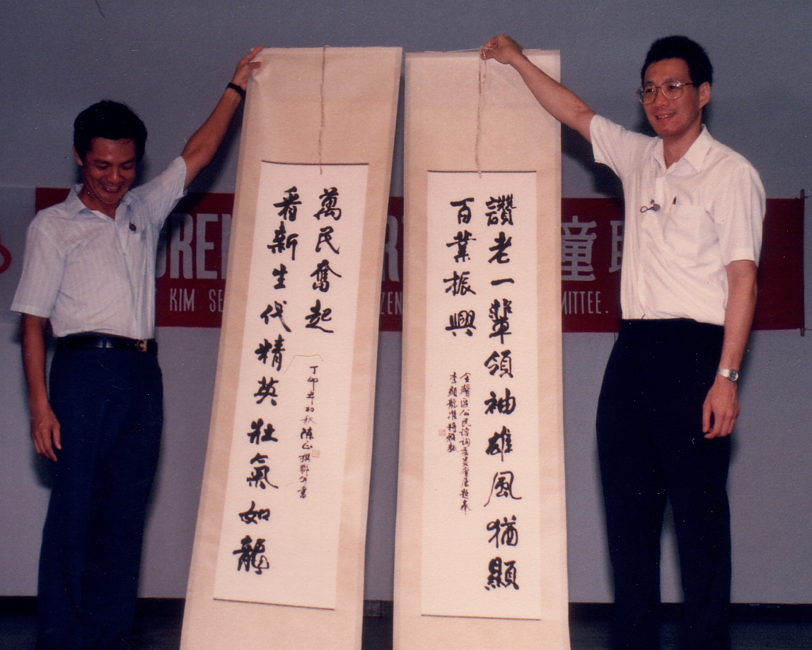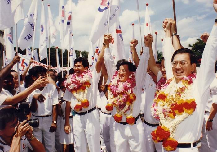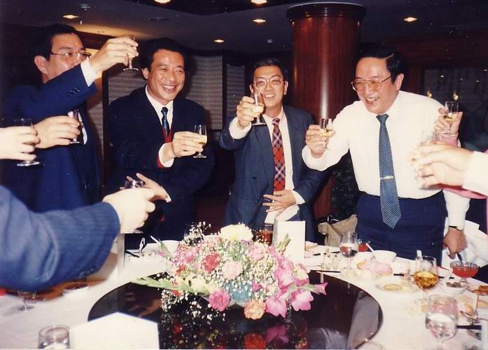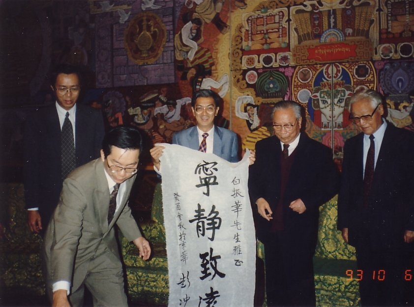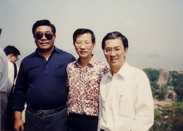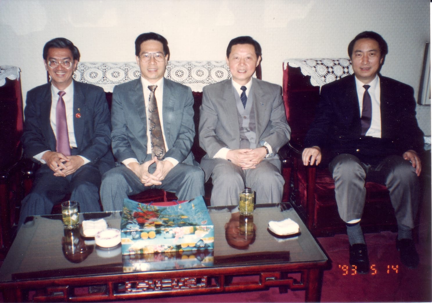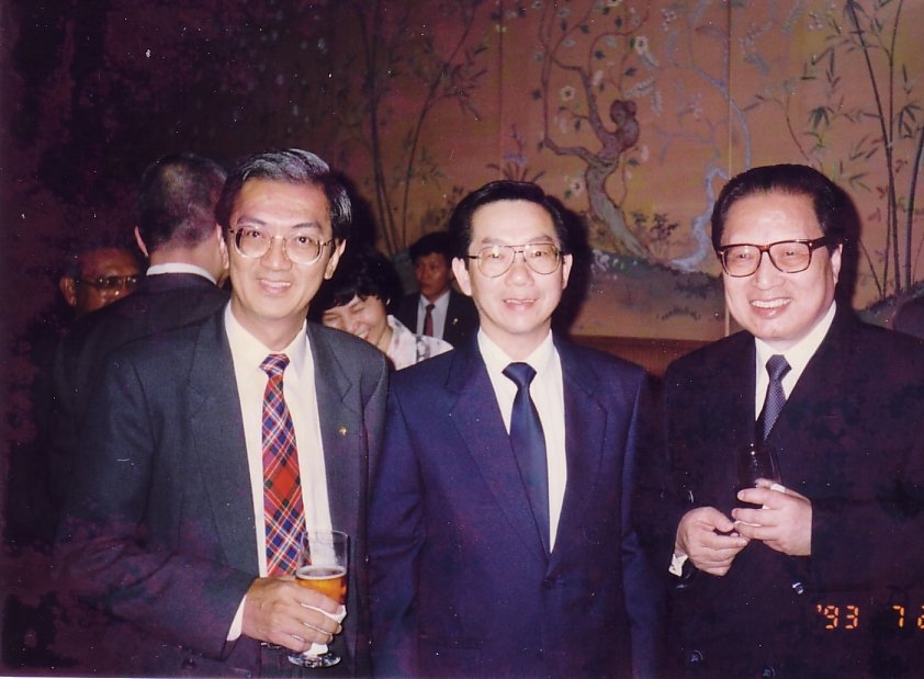 1993年4月14日 – 当时台湾民进党第一任主席许信良(中)和民进党议员许国泰(右一)率领民进党影子内阁到新加坡进行亲善友好访问,新方国会议员白振华(左二)和国会同僚王雅兴(右二)亲临接待。过后,安排以民进党许信良主席率领的民进党影子内阁私下秘访北京和上海以了解中国的政治、经济、社会和人民生活情况,目的是希望民进党能够多了解中国的实际情况,而放弃台独,海峡两岸共同走向和平统一。民进党许信良主席一行人从中国返回新加坡;便私下表示同意放弃台独,走向海峡两岸和平统一的道路。岂知,许信良返回台湾之后,宣布他所领导的民进党将不走台独路线;却被台湾民进党的某些领导和党员逼走离开民进党。这件事情的发生,让我对许信良和许国泰以及当时民进党的影子内阁多了更深层的敬意。