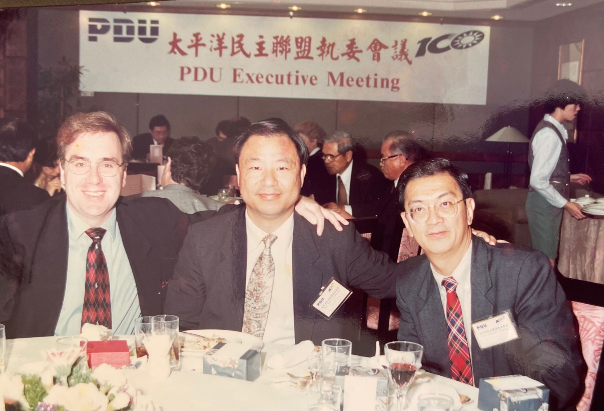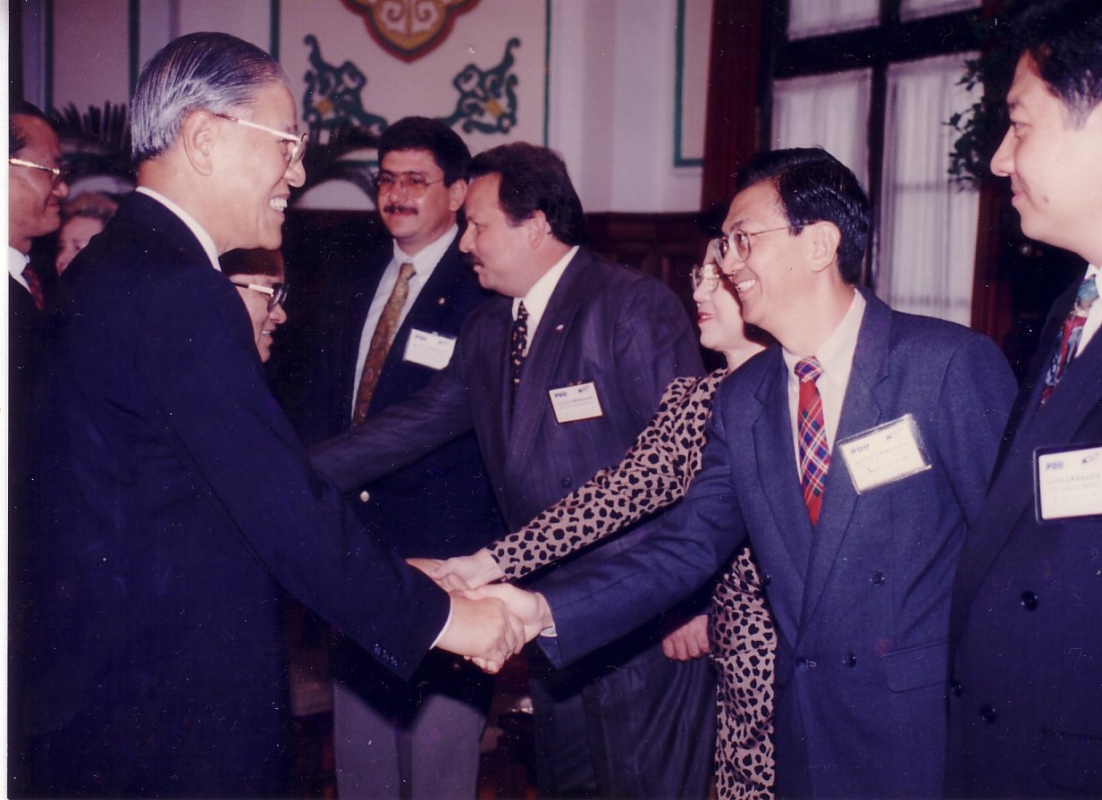 1994年11月16日 – 我曾代表新加坡共和国受邀出席在台北举行的太平洋民主联盟执委会议(PDU Executive Meeting)。当时我和许多太平洋国家领导举行了三天的政治会议,于台北总统府和李登辉总统进行友好交流。李登辉总统曾在会谈中提出他个人对中国社会发展和人民生活困苦的担忧,但会上的外国领导没有人提出异议。我当时直接向李登辉总统提出关于他个人对中国的言论,表示质疑!因为我在中国有投资项目,几乎每一两个月就会到中国出差,但我在中国的所闻所见并不如李登辉总统所述的情况。过后,李登辉总统在送行之前还特地向我表示敬意。